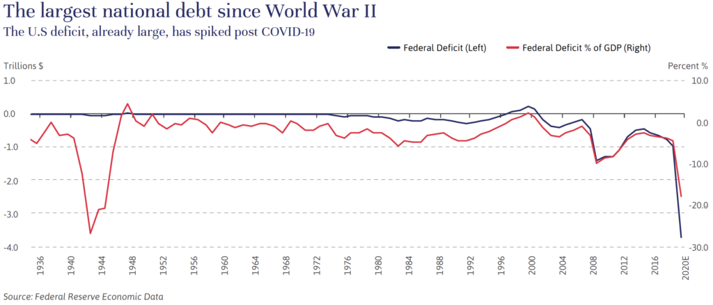 Low inflation was an important component of the decade-long bull market in equities and the key driver of the 30-plus year bull market in bonds. We do not view high inflation as an immediate, or even a likely, medium-term threat. Whether monetary and fiscal policies result in significant long-term inflation depends on the magnitude of deficit spending, the permanence of that spending, how much of that spending is monetized by the Fed, tax and regulatory policy, and other inflationary or deflationary forces occurring alongside those policies.