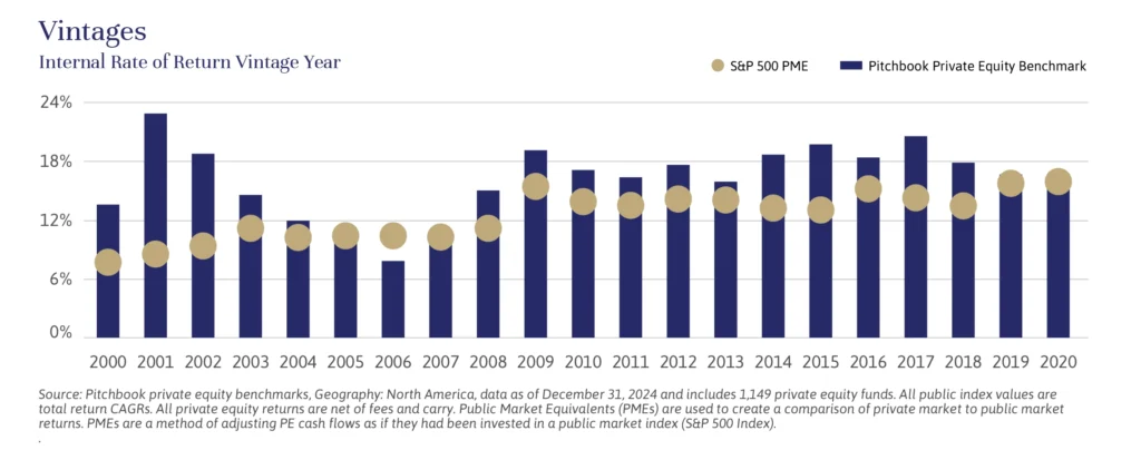 For investors with a long-term investment horizon and tolerance for illiquidity, allocating to private equity can add diversification and potential for outsized growth. As investment advisors, we work closely with our clients to consider factors such as total portfolio liquidity needs, sizing and timing of commitments, and exposure across vintage years and strategies.
