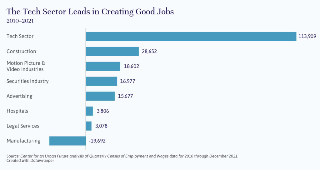Change of this magnitude is never easy, but the timing is fortunate in this regard too. Unemployment remains low in the United States, at 3.8% as of March 2024, mitigating the usual concerns that a powerful new technology will destroy more jobs than it creates. That has been the case, as illustrated in the chart below, but only over the short term. Longer term, technological advances create new, higher paying jobs.